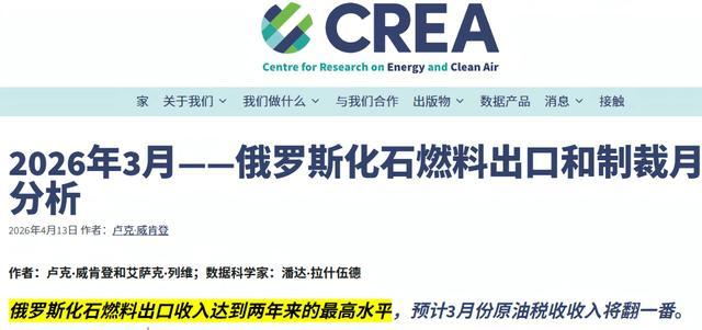 最近美CBS新闻、财富杂志等刊登了一则消息,俄罗斯在美伊战争中大发横财,赚的盆满钵满。据俄罗斯化石燃料出口数据显示,整个3月份,俄罗斯的化石燃料出口达到两年来的最高水平,可以说,俄罗斯这次真的“赚麻了”。